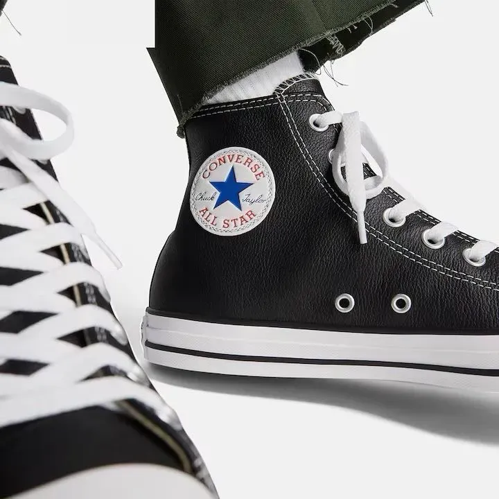 Estos Converse Chuck Taylor All Star High Top en cuero son el complemento perfecto para tu estilo urbano. Confeccionados con cuero de alta calidad, ofrecen comodidad y durabilidad. Su diseño clásico y versátil los convierte en un must-have para cualquier ocasión. ¡Hazte con ellos y destaca en cada p...